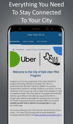 Sebagai bentuk komitmen terhadap kenyamanan, manfaatkan juga kolaborasi istimewa kami dengan Uber. Melalui Uber Kyle, sebuah kemitraan antara Kota Kyle dan platform berbagi tumpangan Uber, opsi transportasi yang nyaman kini tersedia luas bagi seluruh penduduk dan pengunjung kota. Jadilah warga yang lebih terlibat dan nikmati pengalaman kota yang lebih kaya hari ini.