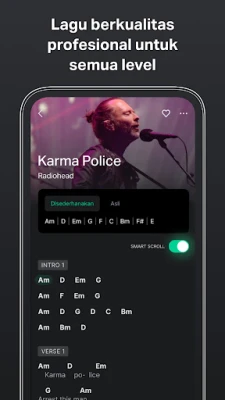 Rasakan kemudahan menyetem instrumen Anda tanpa perlu perangkat keras tambahan. Cukup gunakan mikrofon internal perangkat Anda, dan teknologi pengenalan suara canggih GuitarTuna akan membimbing Anda secara *real-time*, memastikan setiap senar menghasilkan nada yang sempurna. Dengan pilihan lebih dari 15 jenis penyetel instrumen dan ratusan opsi penyeteman, mulai dari standar hingga kustom, Anda akan selalu siap untuk berkreasi. Selanjutnya, selami perpustakaan akor dan tab gitar yang luas, menampilkan lebih dari 20.000 lagu populer dari artis-artis dunia. Mainkan dengan kecepatan Anda sendiri, karena tab dan akor tersinkronisasi, memudahkan Anda belajar dan menguasai setiap melodi.